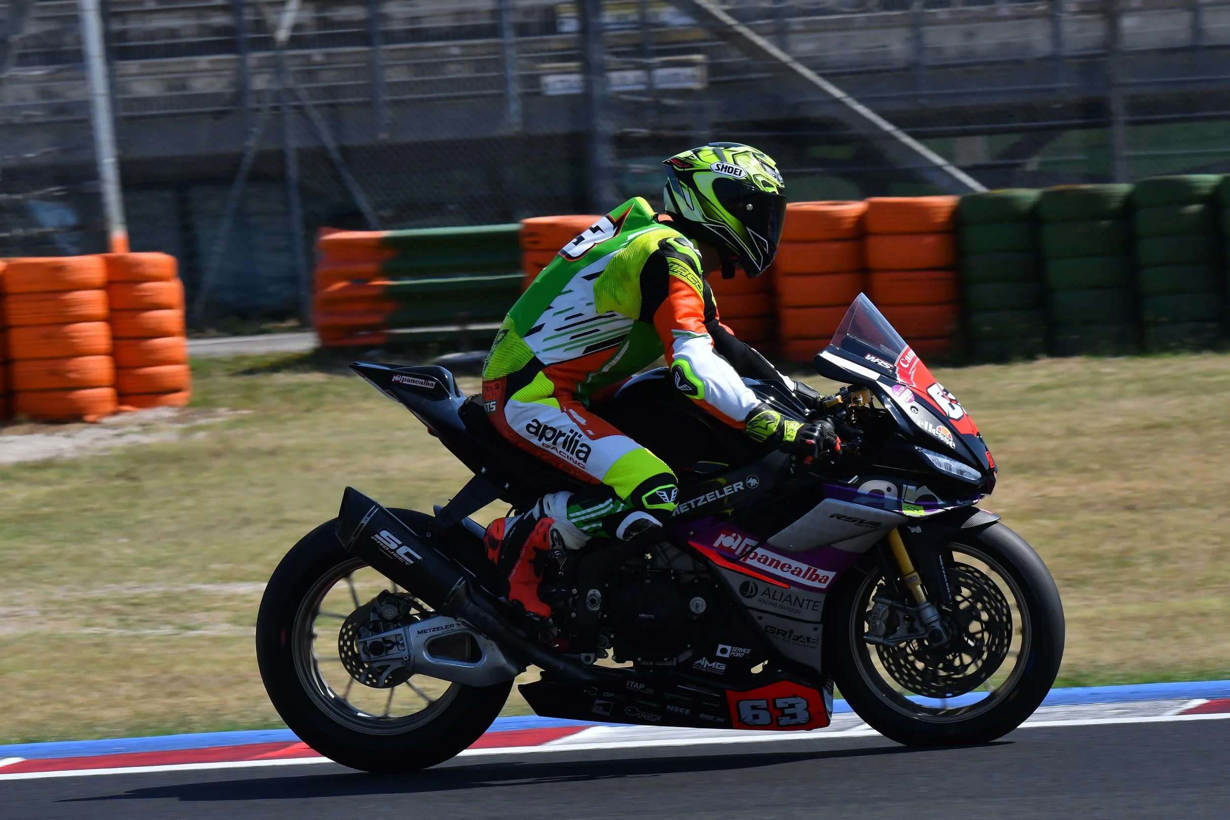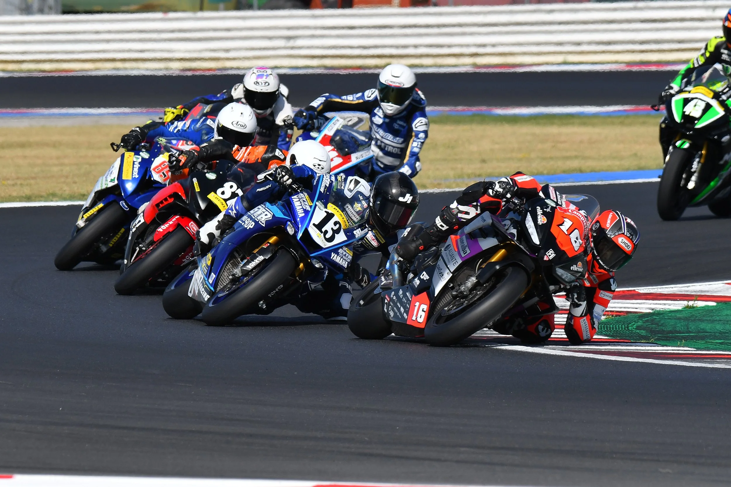 Dopo una partenza a fionda Matteo prende la prima posizione della gara e ci rimane fino all’ultimo giro quando ritrovatosi in crisi con le gomme veniva superato perdendo cosi la prima posizione conquistando un meritato secondo posto. David Torrents #63 ha chiuso al settimo posto combattendo con i primi fino alla fine mentre Roberto Bortolotto #62 ha affrontato una gara difficile chiudendo in rimonta al decimo posto raccogliendo punti preziosi.