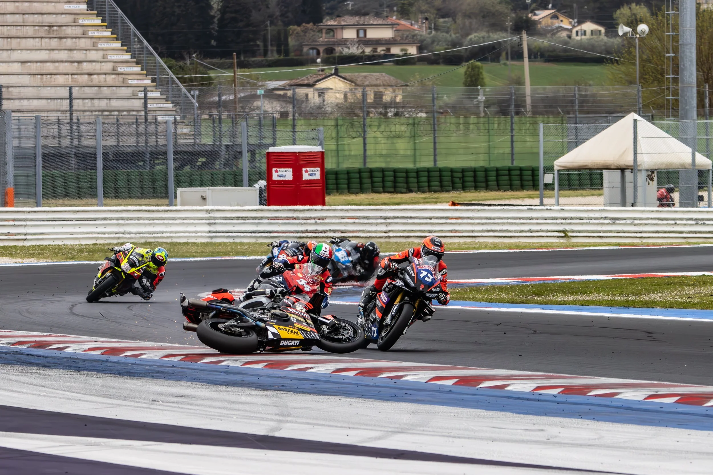 Nella categoria Superbike, Nicolas Spinelli ha portato in pista la sua Aprilia RSV4 1100 con grande determinazione. In gara 1, Spinelli ha lottato nel gruppo di testa fino a raggiungere la seconda posizione, che ha mantenuto per buona parte della gara. Purtroppo, a quattro giri dalla fine, una scivolata alla prima variante ha compromesso il risultato finale. Nonostante l’incidente, Spinelli è riuscito a ripartire e a chiudere comunque in nona posizione. In gara 2, un forte vento freddo ha condizionato le prestazioni sin dalle prime battute. Dopo un avvio combattivo nel gruppo in lotta per la terza posizione, il pilota ha faticato nella seconda parte della corsa, concludendo sesto al traguardo.